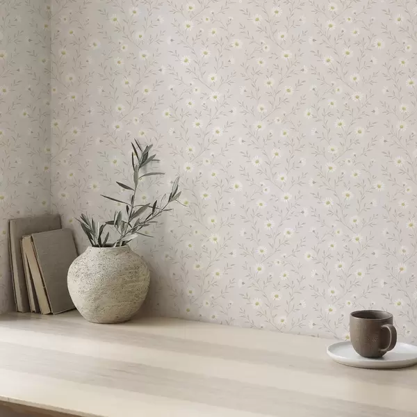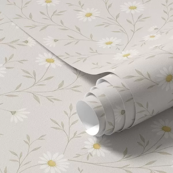 Papel pintado Pequeñas margaritas en ramitas, beige cálido Nr. a00777