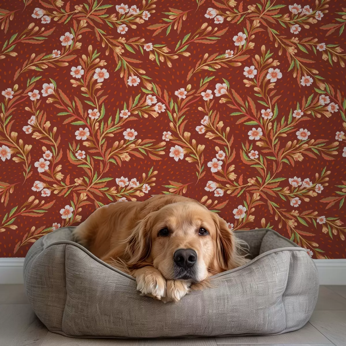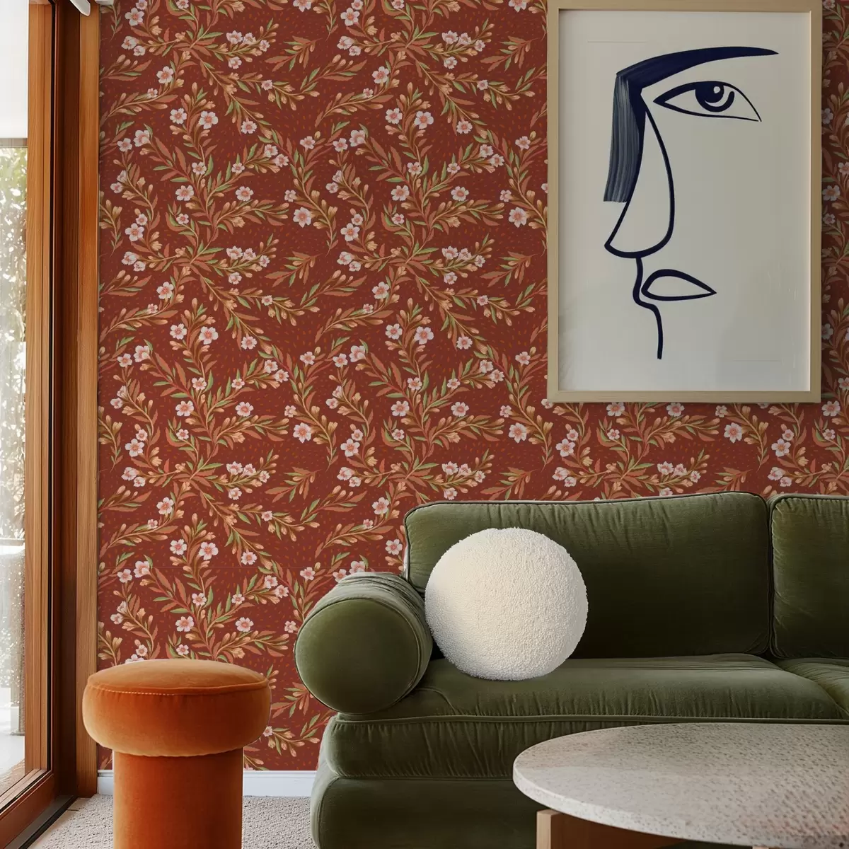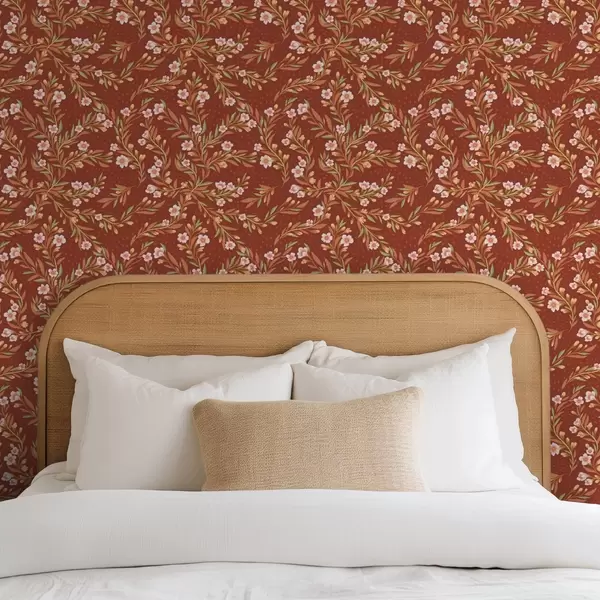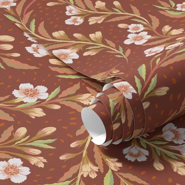 Papel pintado Ramas con flores blancas sobre fondo terracota Nr. a00850v1