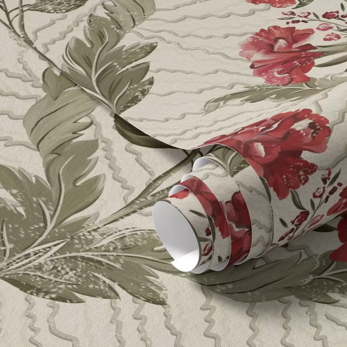 Fotomurales Grandes peonías rojas con fondo gráfico, fondo crema Nr. a00857