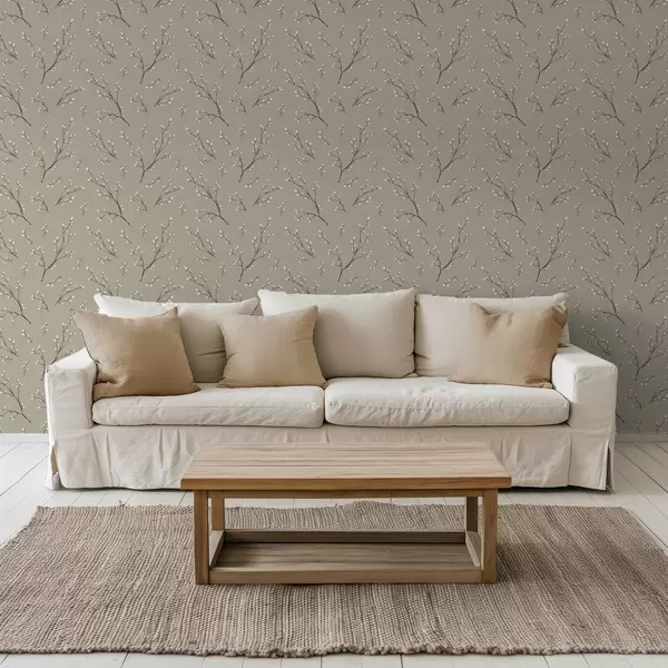Fotomurales Ramitas con brotes blancos sobre fondo gris topo lino Nr. a00861