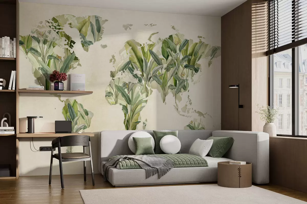 Fotomurales Un mapa verde del mundo hecho con hojas de plátano Nr. c00007