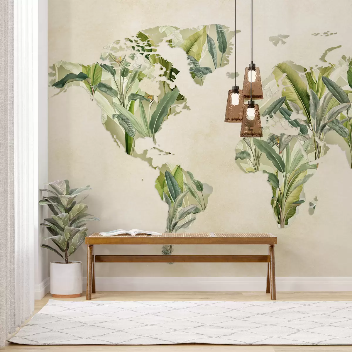 Fotomurales Un mapa verde del mundo hecho con hojas de plátano Nr. c00007