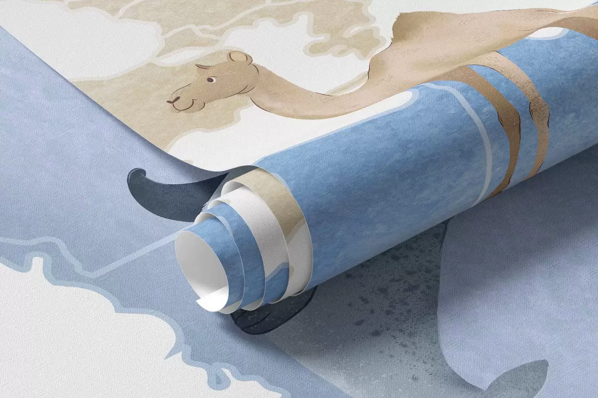 Fotomurales Un mapa azul de estilo acuarela con animales. Etiquetas en francés Nr. c00012frv1