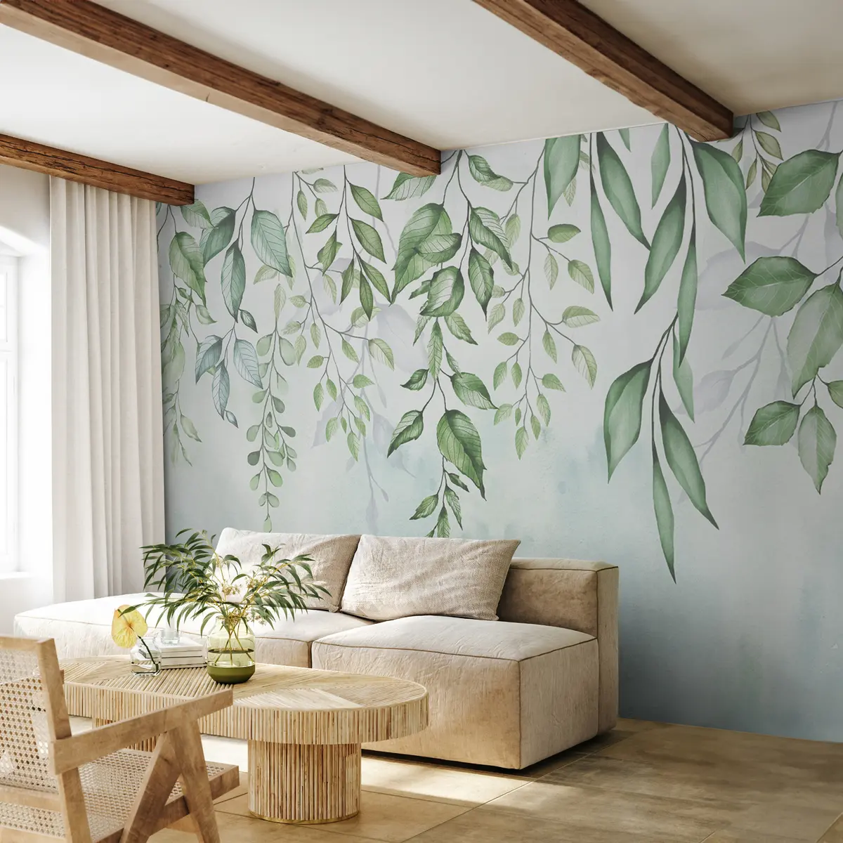 Fotomurales Hojas de color verde claro en acuarela Nr. u08700
