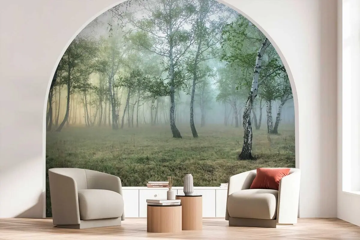 Fotomurales Bosque de abedules de niebla Nr. u25820