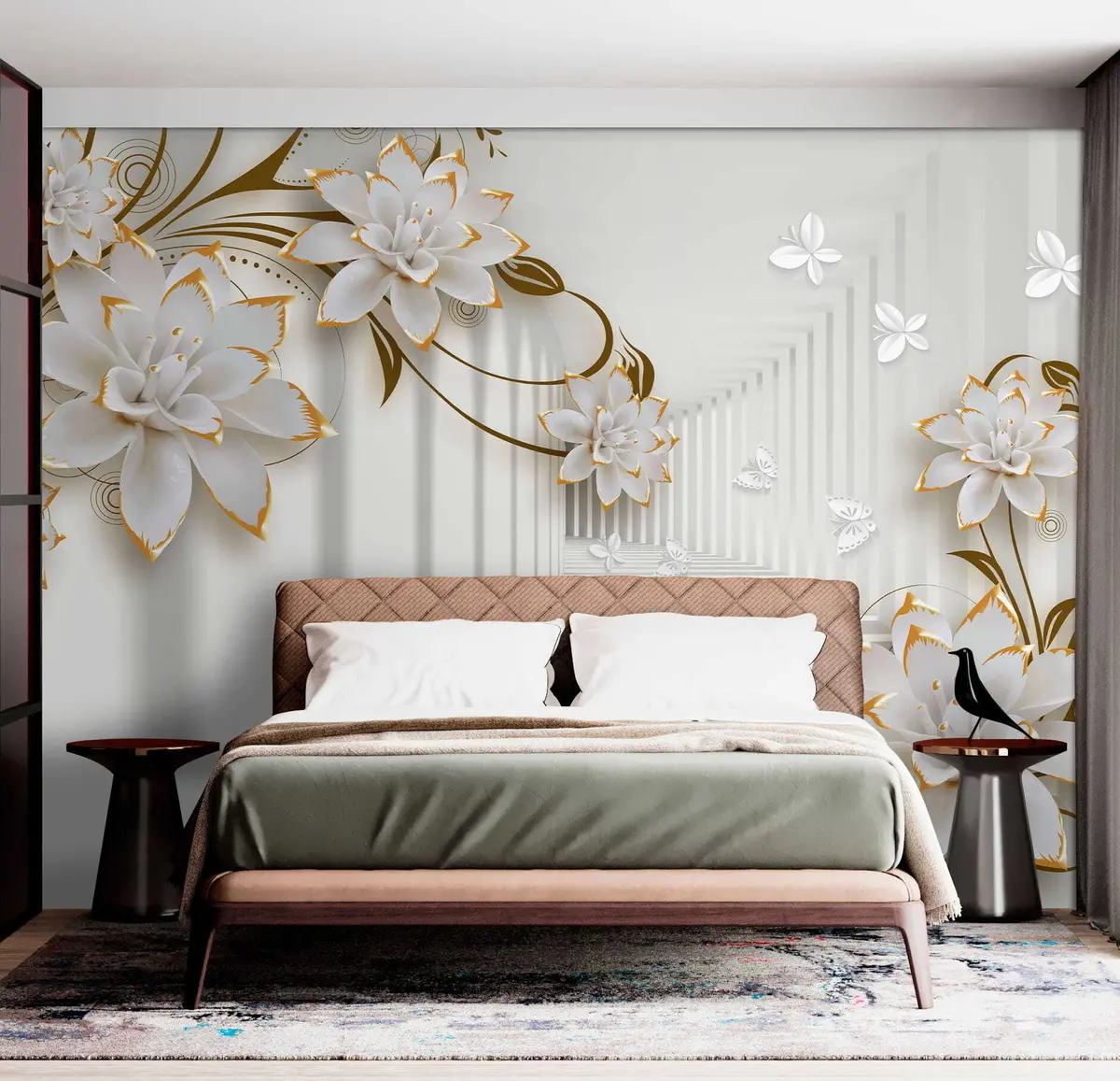 Fotomurales Flores y mariposas en un túnel de luz Nr. u47046