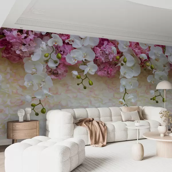 Fotomurales Flores rosas y blancas en pétalos. Nr. u57056