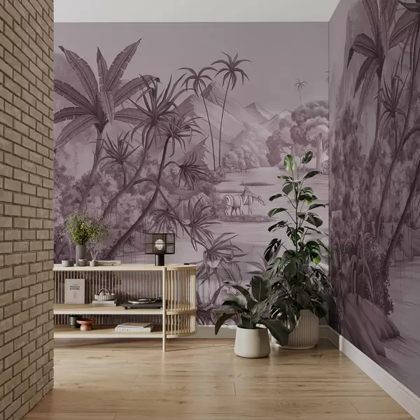 Fotomurales Trópico blanco y negro en colores púrpura Nr. u59040v3