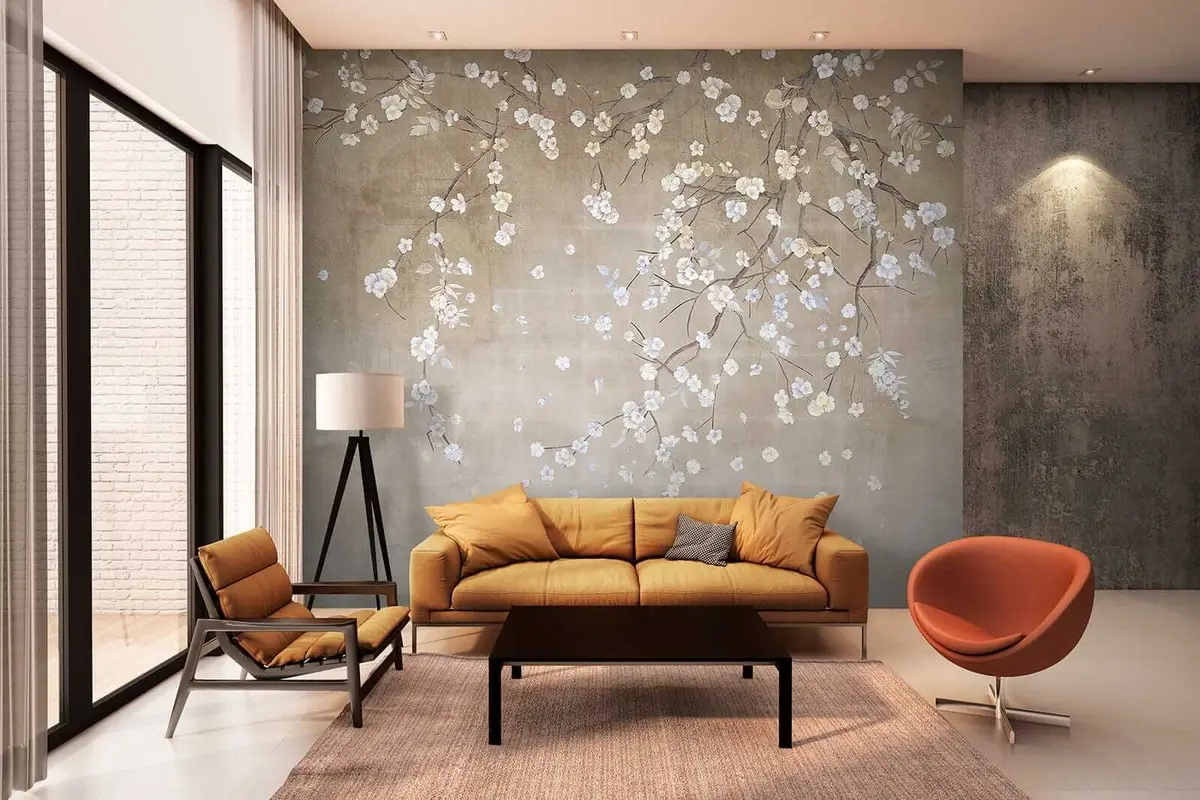 Fotomurales Árbol en flor en una pared en mal estado Nr. u61369