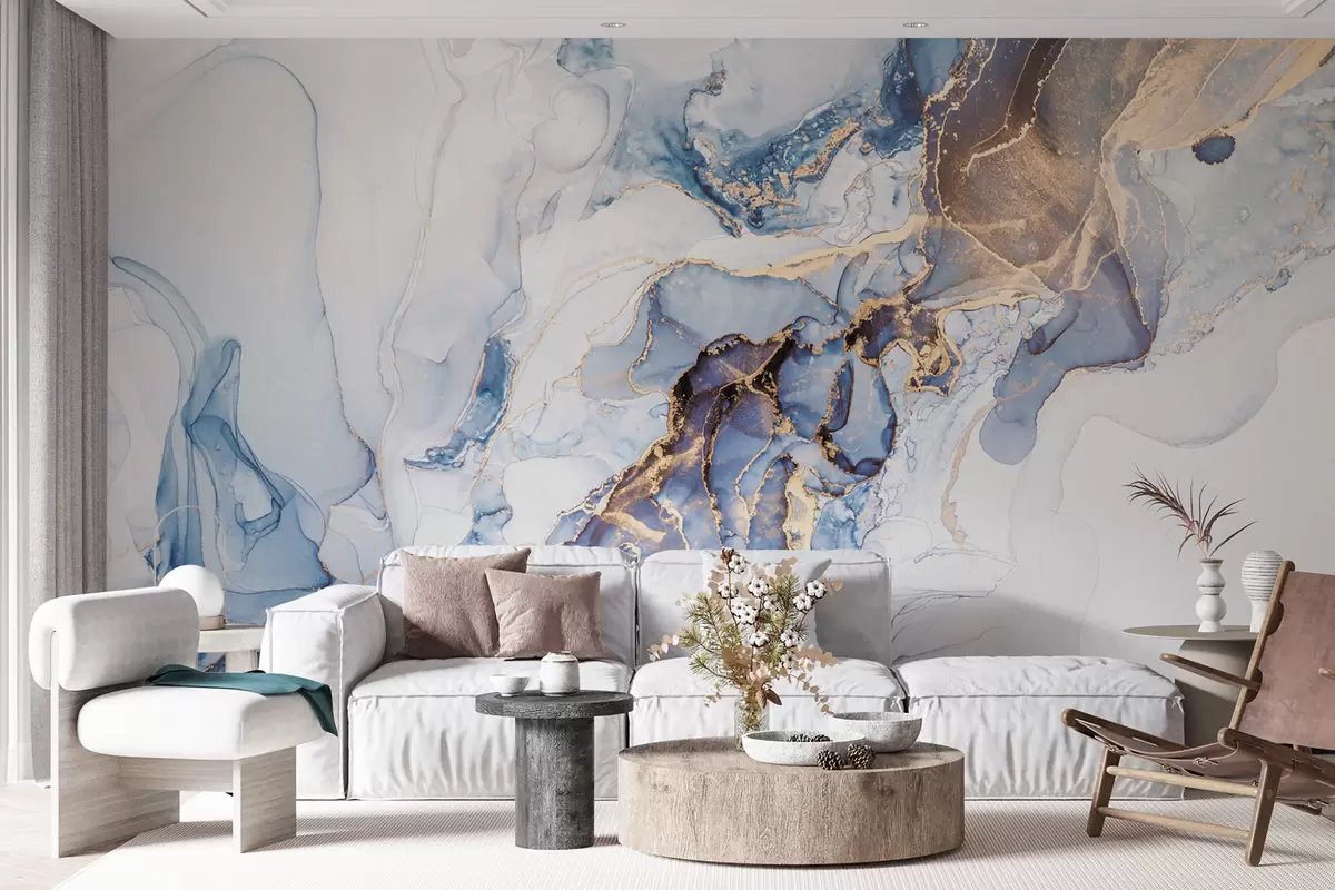 Fotomurales Mármol blanco azul, fluido Nr. u70767
