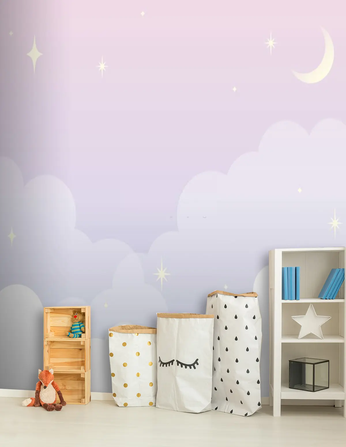 Se puede limpiar suavemente con una esponja suave. Los murales de pared con recubrimiento de barniz pueden limpiarse con agua.
