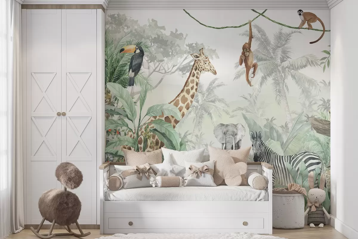 Fotomurales Panorama de la jungla con animales Nr. u74709