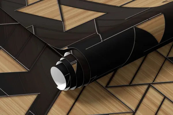 Fotomurales triángulos 3D gris oscuro y veteado de madera con líneas en relieve Nr. u75167