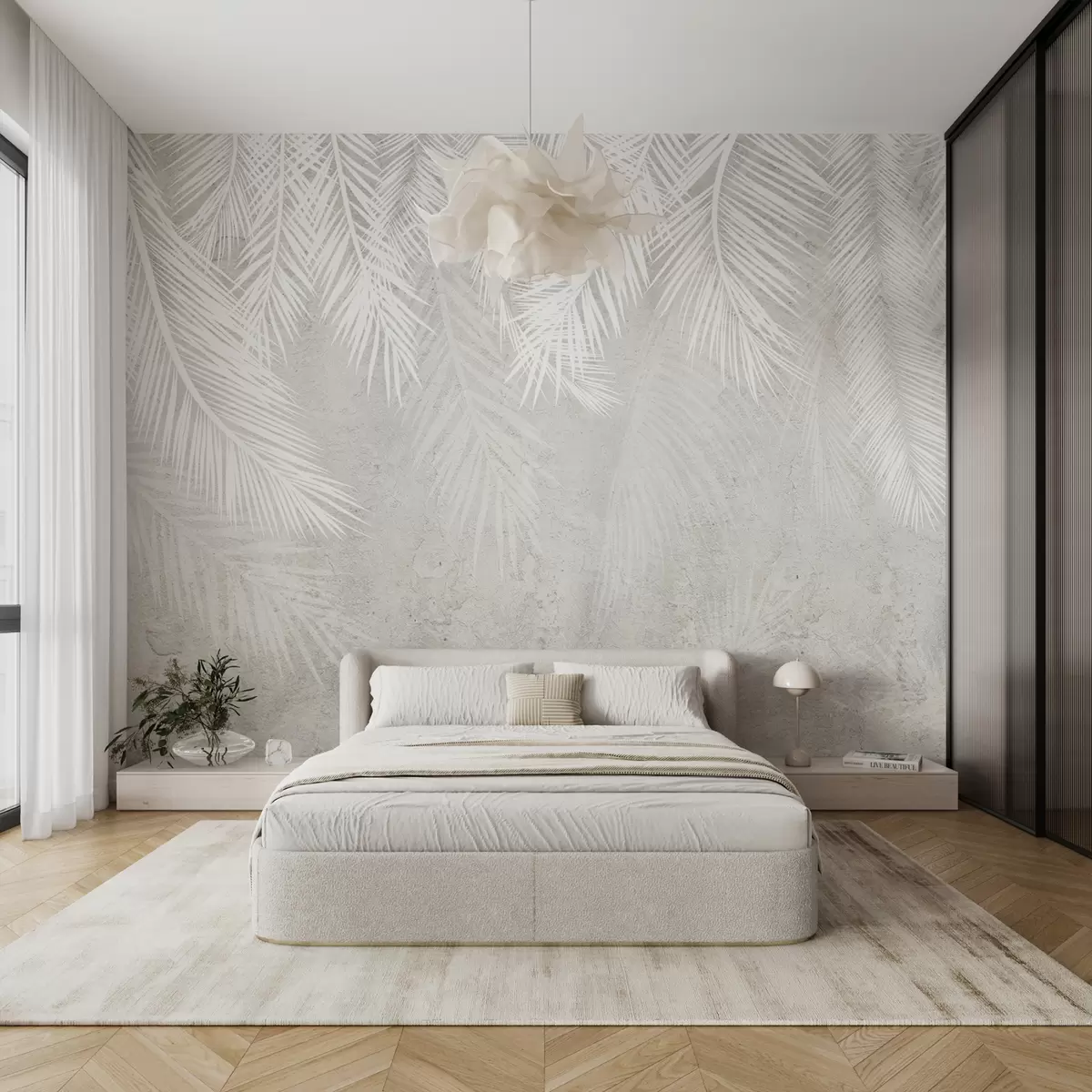 Fotomurales Hojas de palma frágiles blancas con textura grunge Nr. u94286