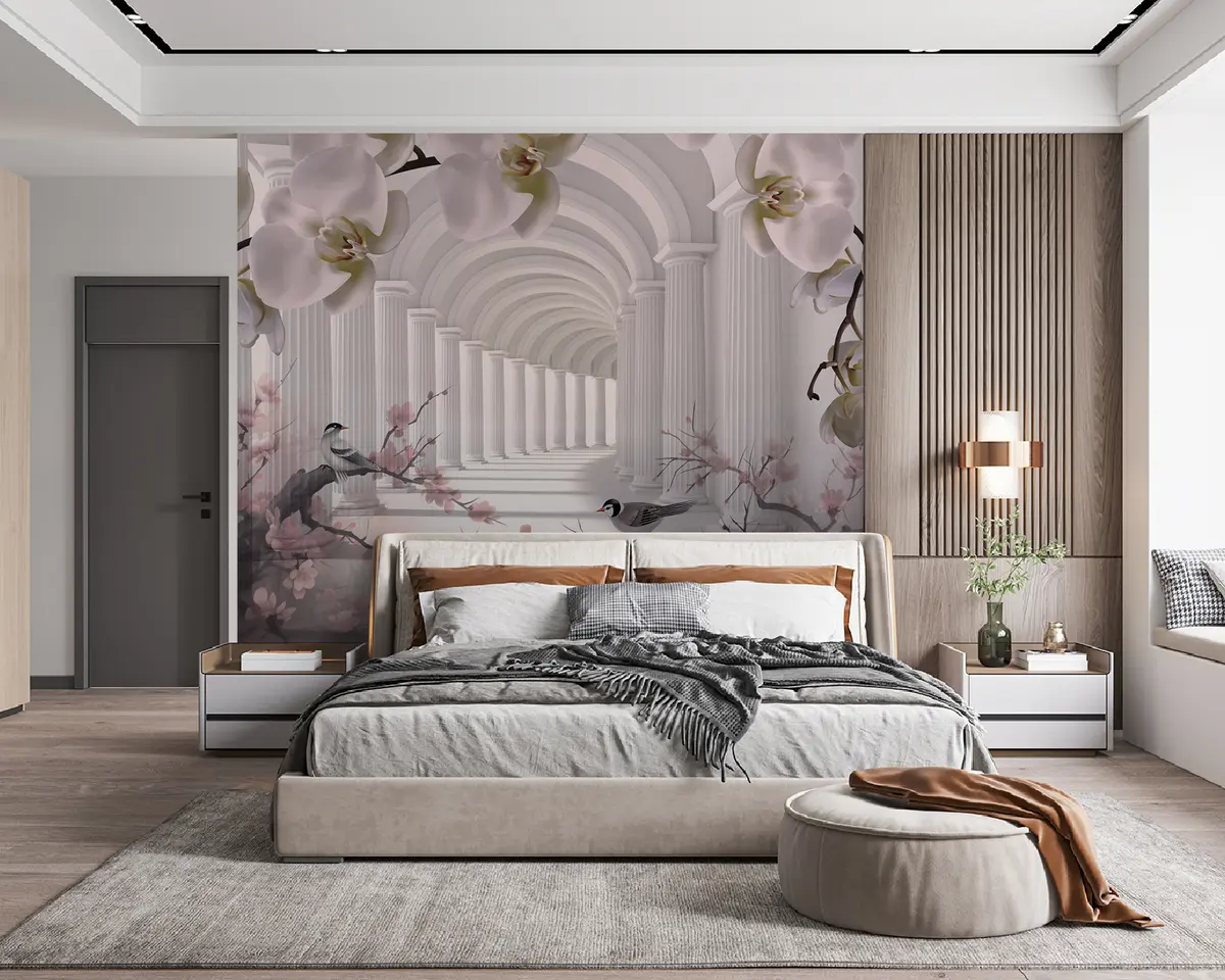Fotomurales Hermoso túnel con pájaros y orquídeas. Nr. u94513