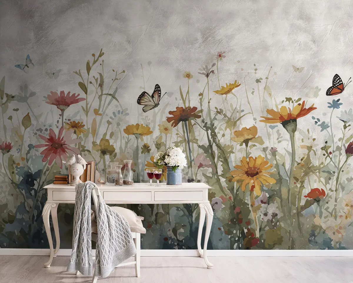 Fotomurales Acuarela flores silvestres y mariposas Nr. u95406