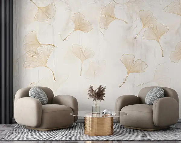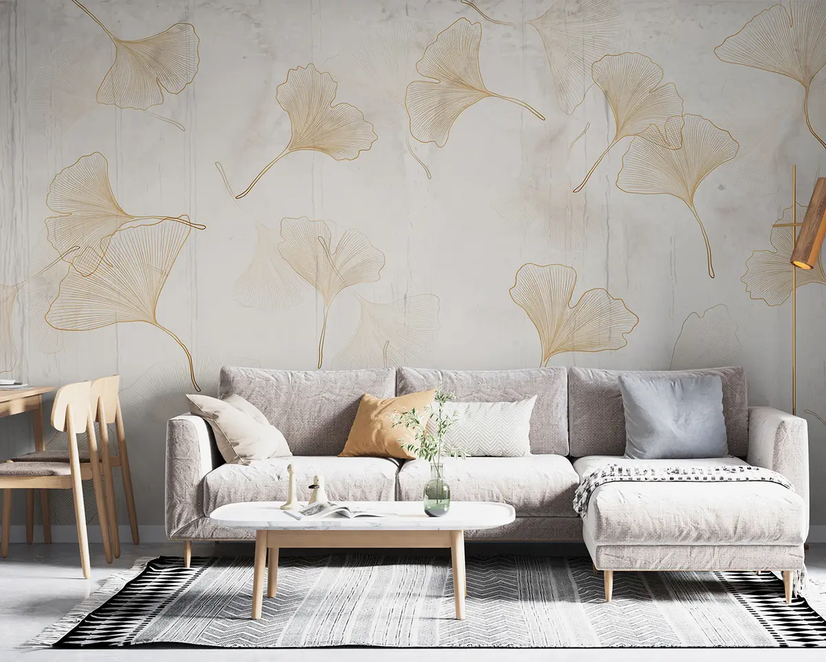 Fotomurales Hojas de ginko en tonos beige. Nr. u96467