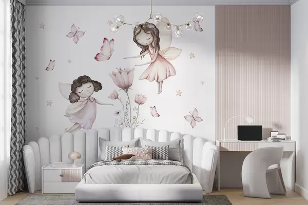 Fotomurales Hadas de acuarela con flores y mariposas. Nr. u96741