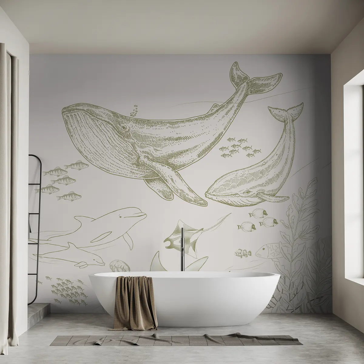 Fotomurales Mundo submarino, arrecife con ballenas y delfines Nr. u98151