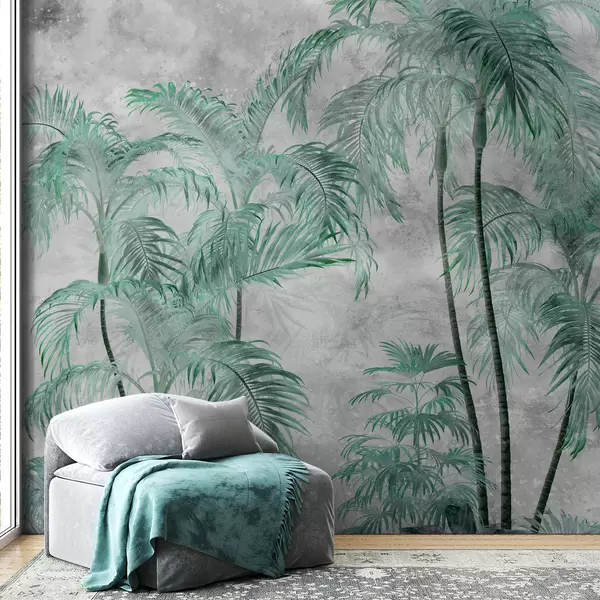 Fotomurales Palmeras tropicales sobre un muro de hormigón Nr. u98586v1