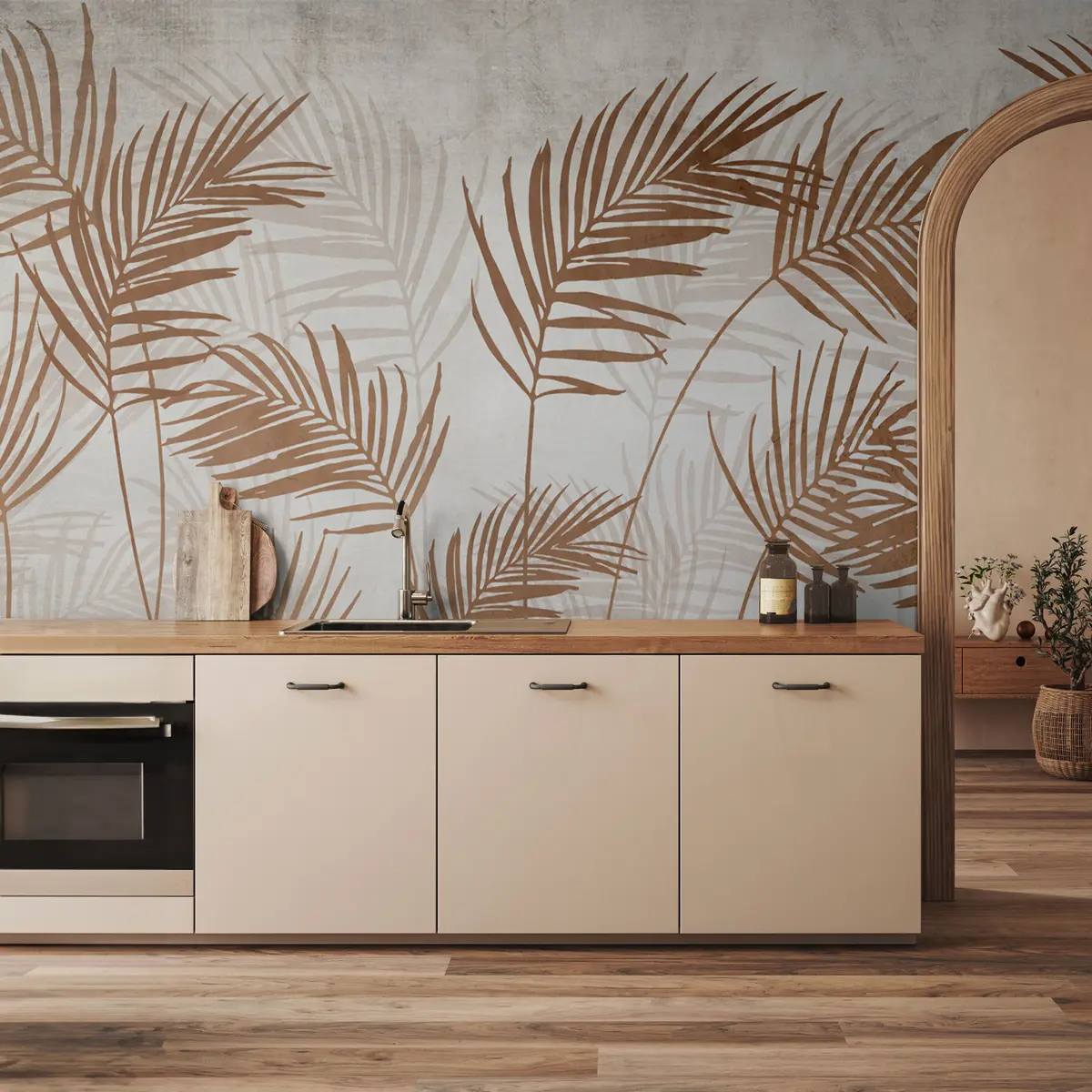 Fotomurales Diseño de papel pintado con árboles tropicales y hojas en el bosque brumoso Nr. u98974