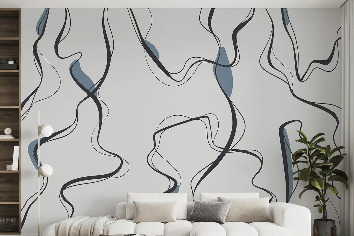 Fotomurales Dibujo artístico a tinta, motivo abstracto, líneas geométricas, gris y azul Nr. u99659