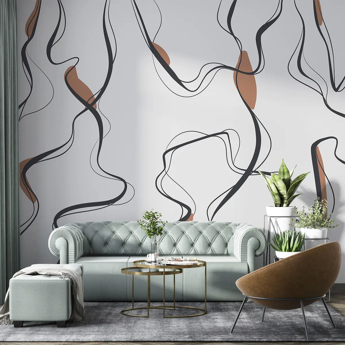 Fotomurales Dibujo artístico a tinta, motivo abstracto, líneas geométricas, gris y naranja Nr. u99659v3
