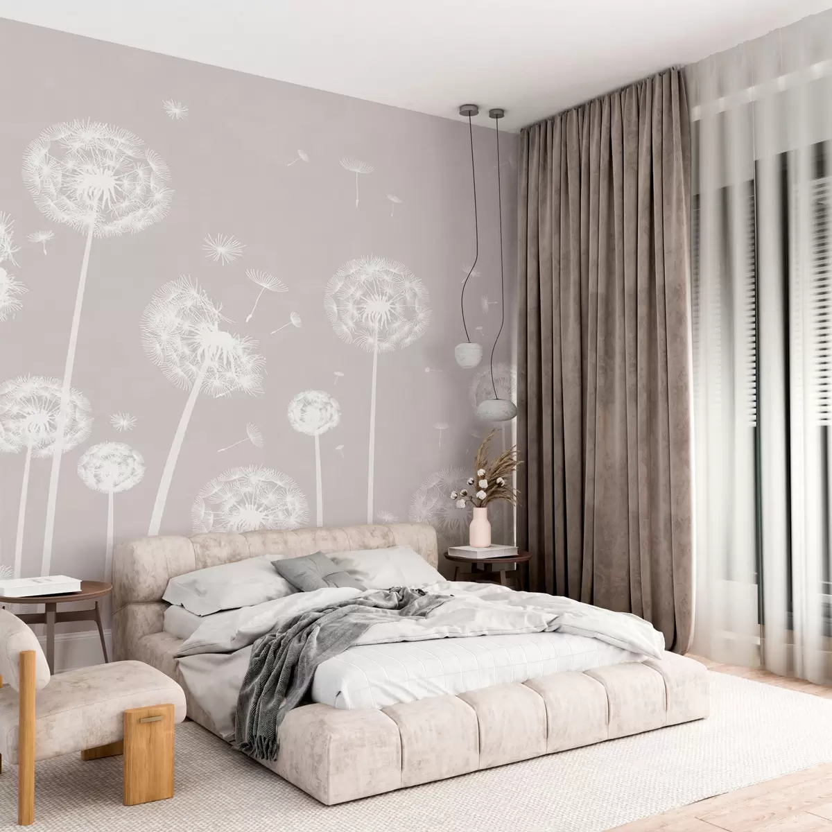 Fotomurales Un campo de dientes de león con un fondo moteado claro de color beige Nr. w00657