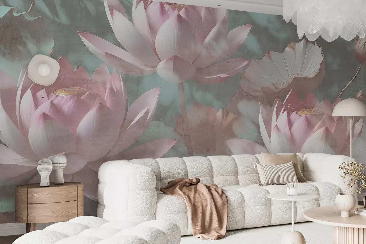 Fotomurales Un primer plano de varias delicadas flores de loto rosa sobre un fondo suave y borroso Nr. w00710