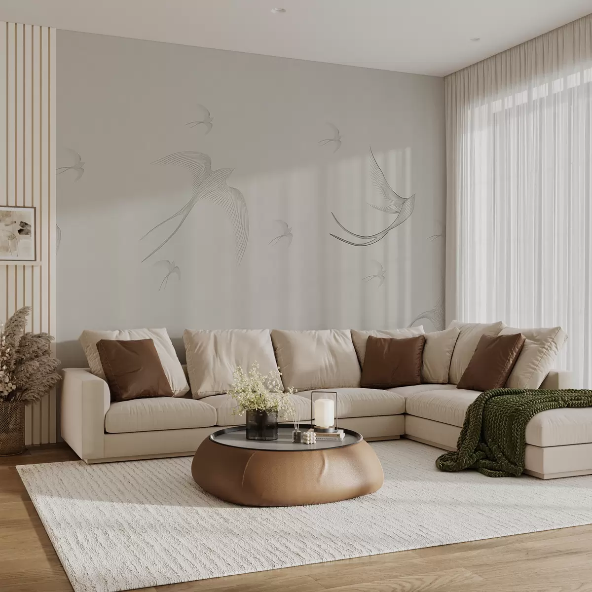 Fotomurales Golondrinas lineales sobre fondo beige Nr. w01264v1