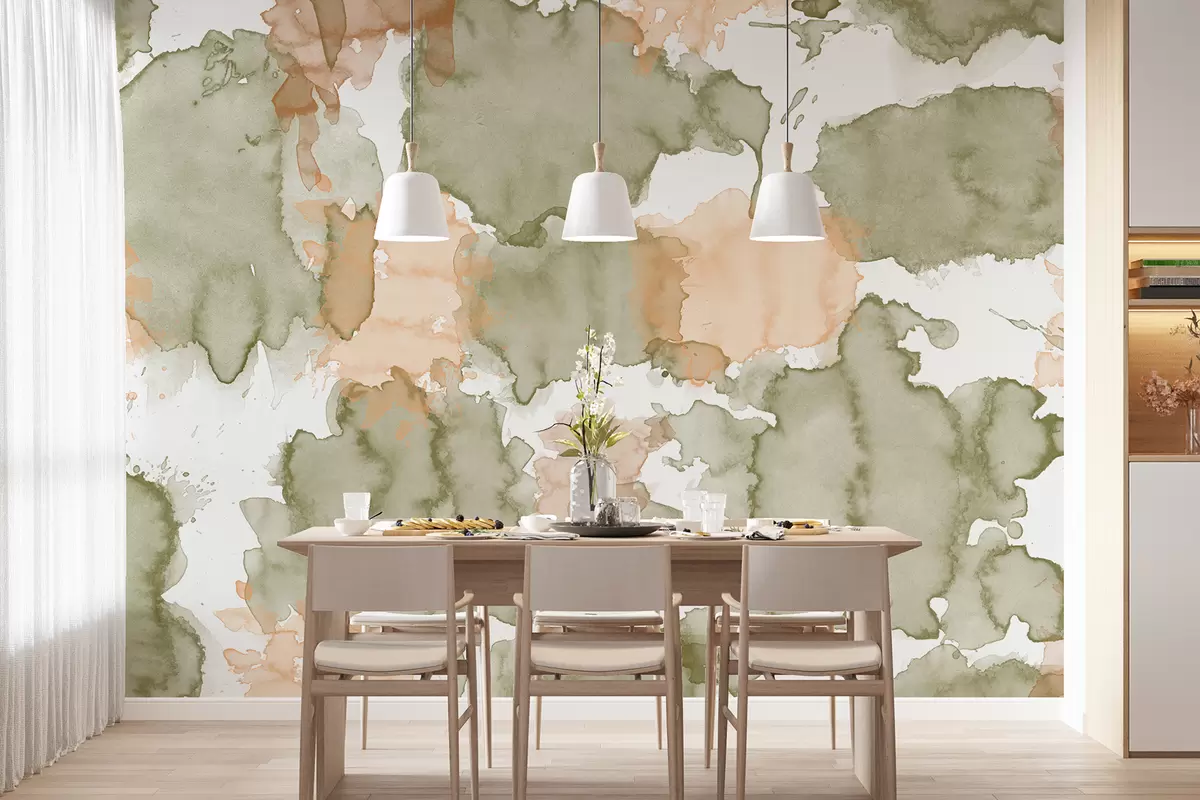Fotomurales Abstracción de acuarela, dibujo de patrones, colores verdes y beige naturales Nr. w01284v1