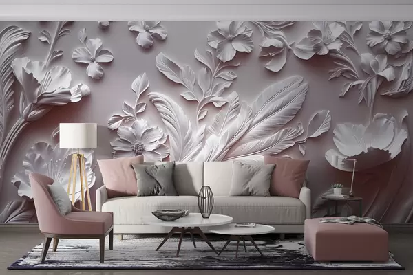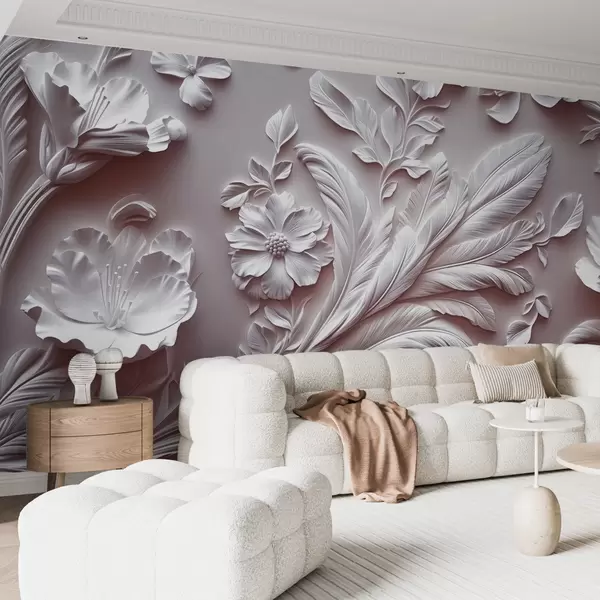 Fotomurales Exquisitas flores y hojas en relieve en tonos rosados. Nr. w01356v1