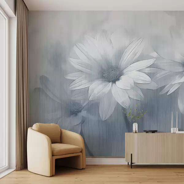 Fotomurales flores grandes en una pared con textura en color azul Nr. w01374v1