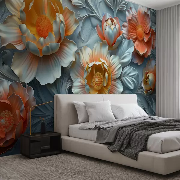 Fotomurales Ilustración 3D de flores abstractas brillantes en estilo barroco sobre un fondo vegetal Nr. w01427