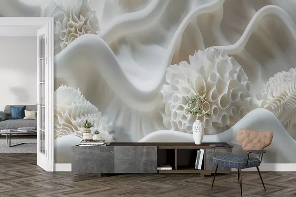Fotomurales Fondo abstracto ondulado de formas blancas en estilo 3D Nr. w01475