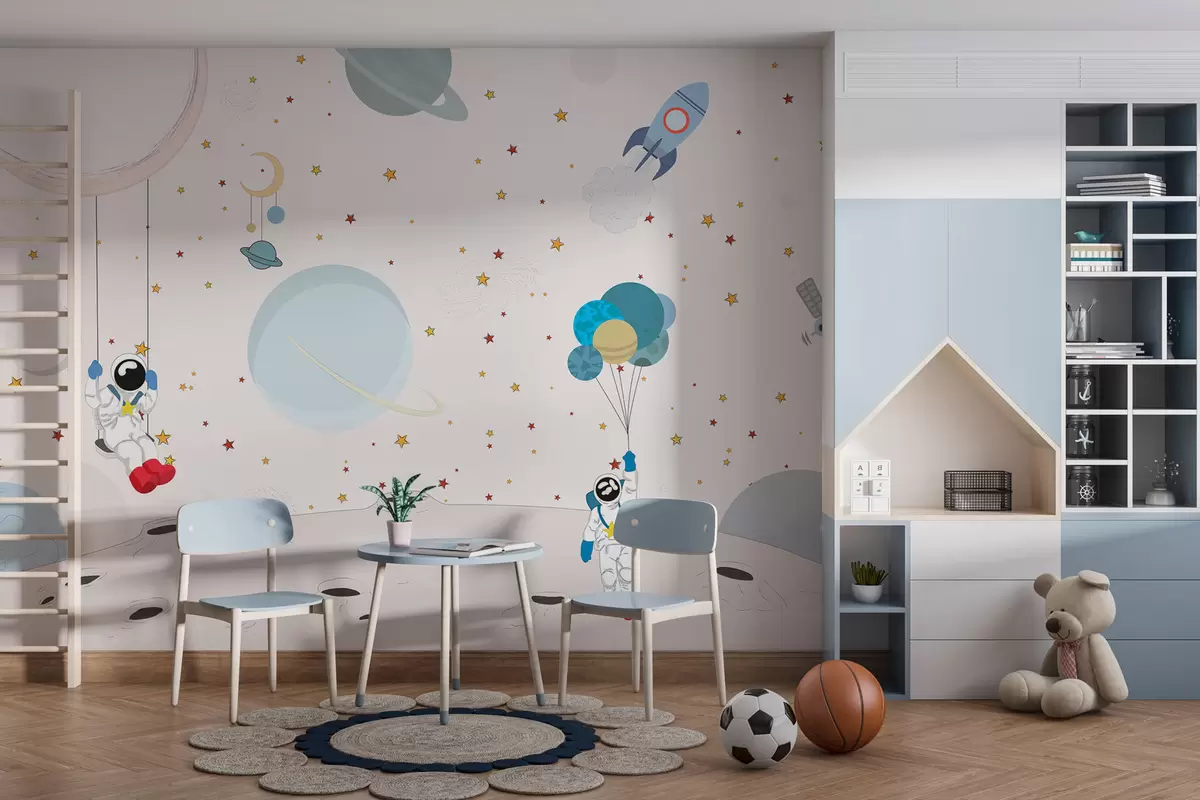 Fotomurales Diseño espacial con astronautas, planetas, cohetes y estrellas. Nr. w01489