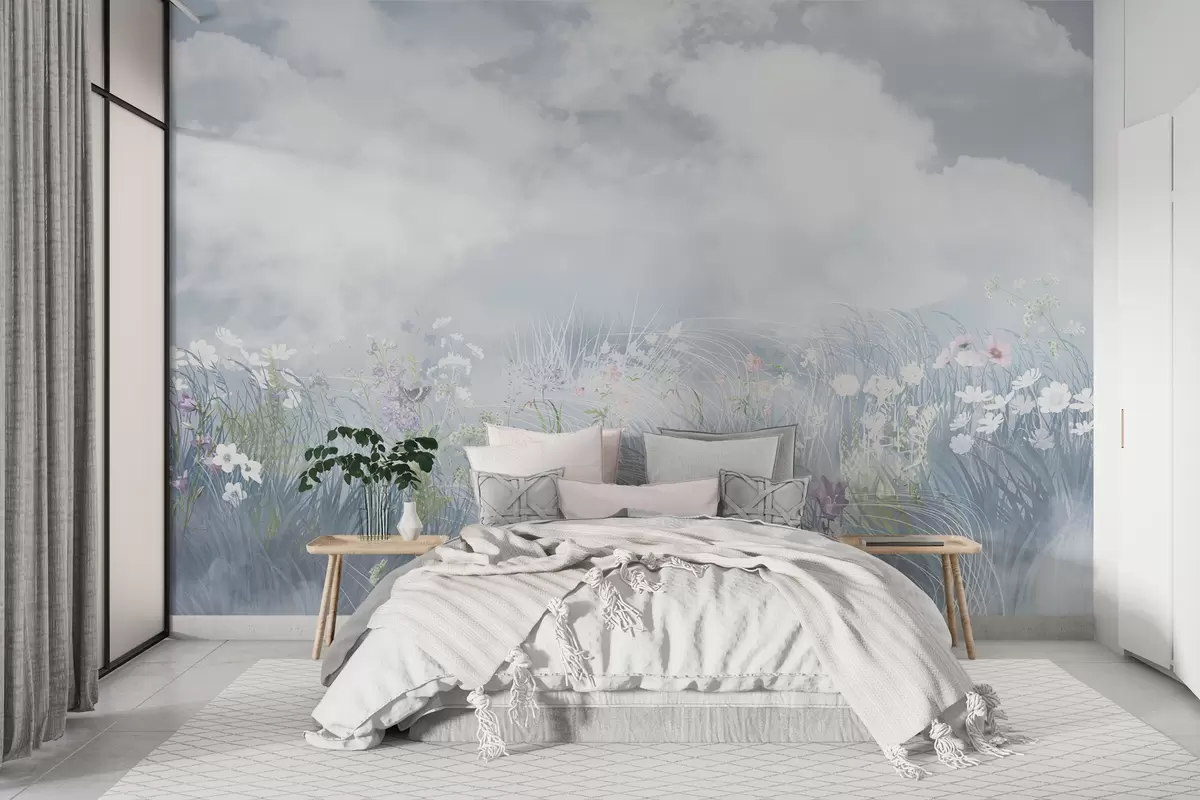 Fotomurales Flores silvestres y hierbas con cielo balcánico y nubes Nr. w01624
