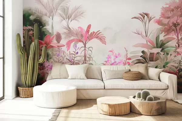 Fotomurales Selva, acuarela, palmeras, floral, colores rosados Nr. w01785v1