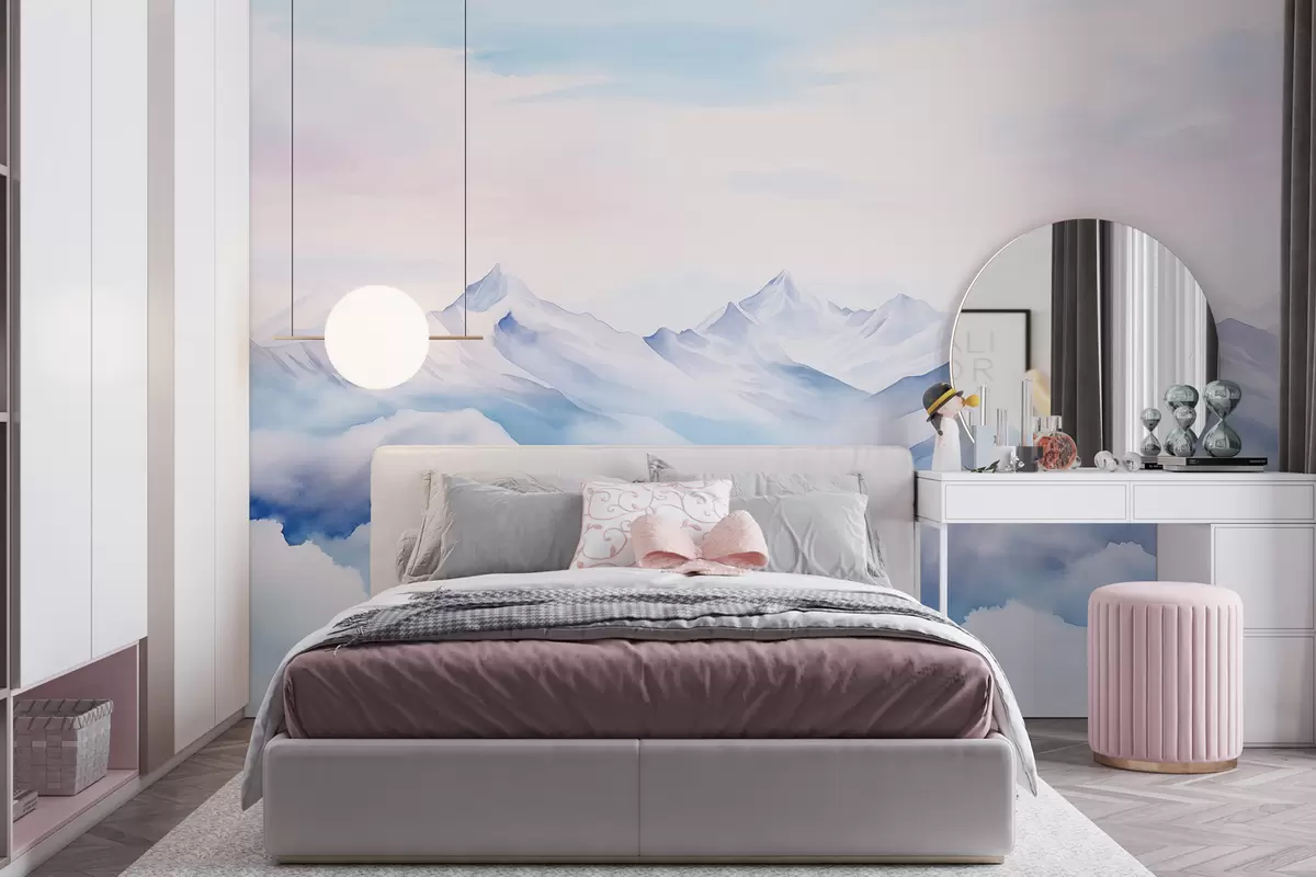 Fotomurales Paisaje de montaña, acuarela, suaves colores morados Nr. w01787