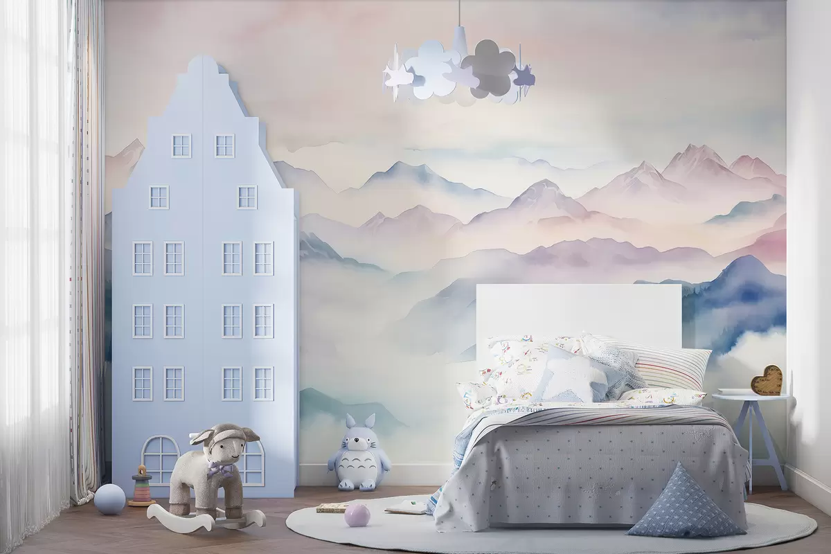 Fotomurales Paisaje de montañas etéreas, nubes, acuarela Nr. w01791