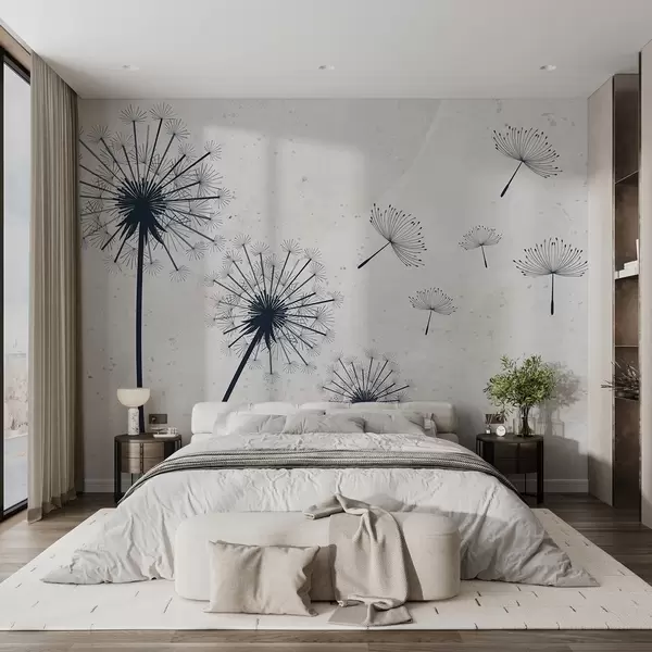 Fotomurales Diente de león azul sobre fondo beige con textura Nr. w01812