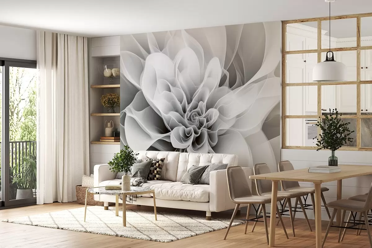 Fotomurales Elegante imagen abstracta de una flor con líneas suaves en gris Nr. w01853v1