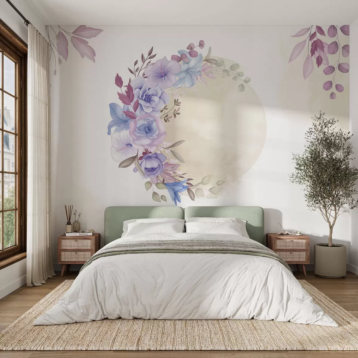 Fotomurales Delicadas flores en forma de media luna en estilo acuarela con manchas beige Nr. w01874