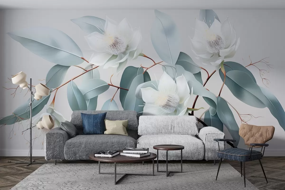 Fotomurales Flores de jazmín en la rama, acrílico, colores grises suaves Nr. w01885