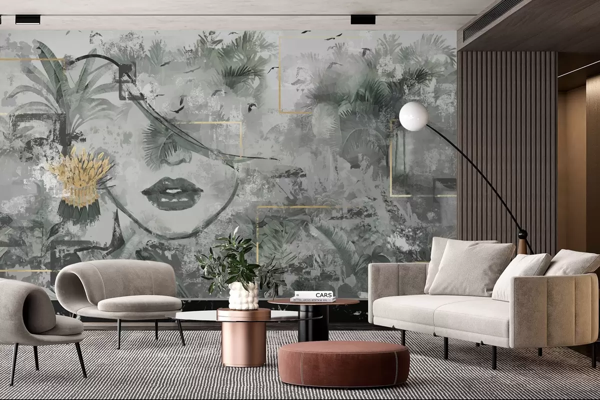 Fotomurales Bosque tropical grunge y silueta de cara de niña Nr. w01916