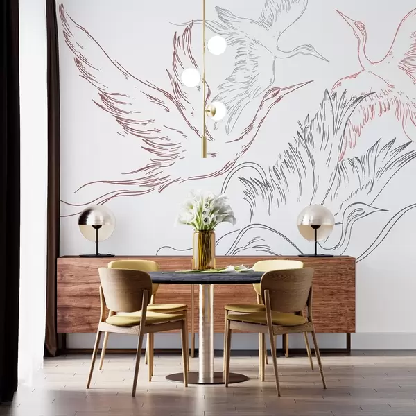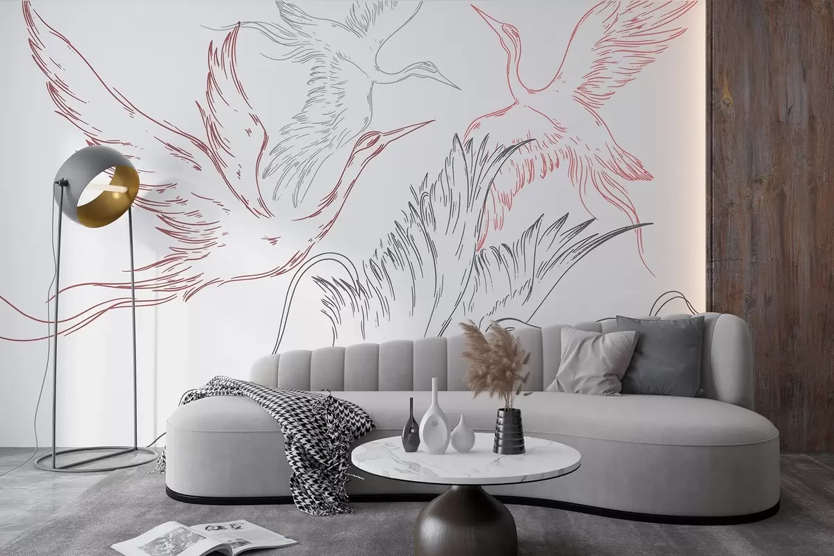 Fotomurales Pájaros volando, minimalismo, arte lineal, naturaleza, colores gris y rojo Nr. w02061v1