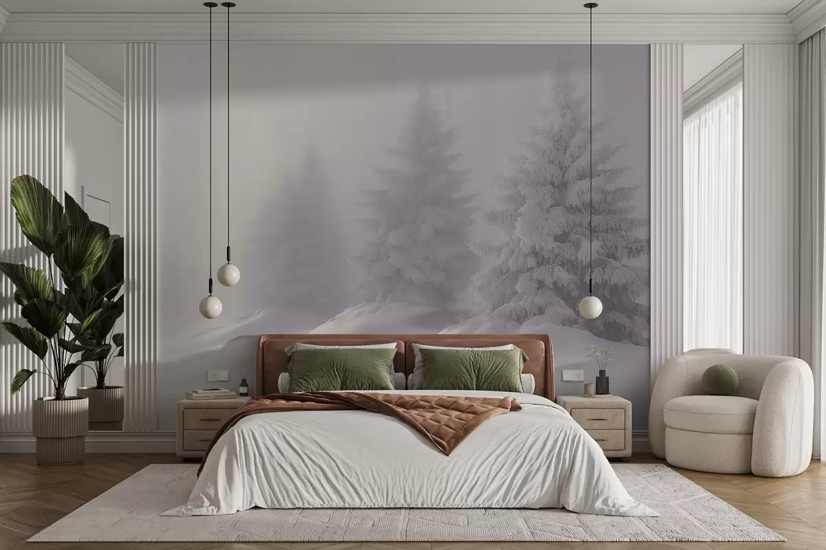 Fotomurales Abetos nevados en la soledad de una mañana de niebla Nr. w02065