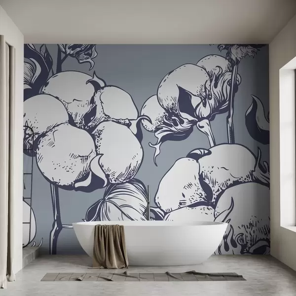 Fotomurales Flores de algodón sobre un delicado fondo azul Nr. w02097