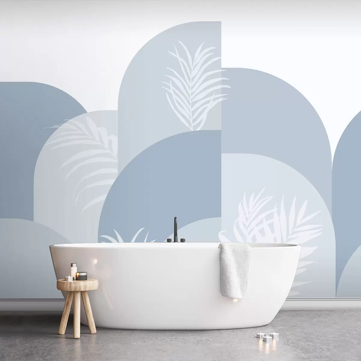Fotomurales Arcos de moda con hojas tropicales color azul Nr. w02101v3