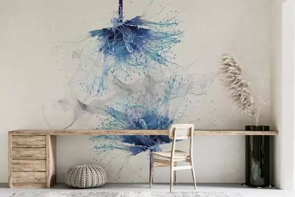 Fotomurales grandes flores azules en primer plano sobre un fondo de humo Nr. w02137v2